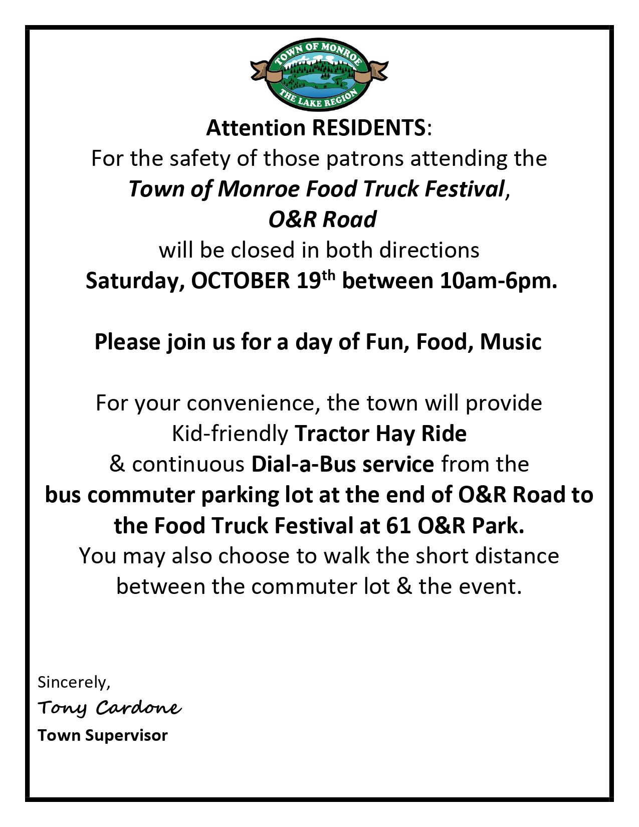 10 October 10-19-2024 Food Truck Festival RE No Dogs Allowed October 10, 2024 By Town Clerk . Community News, General 0 10-19-2024 Food Truck Festival RE No Dogs Allowed Related Articles 10-19-2024 Food Truck Festival O&R Road Closure 10-19-2024 Food Truck Festival O&R Road Closure 10-19-2024 Food Truck Festival Transportation 10-19-2024 Food Truck Festival Transportation Join us this Saturday for the Food Truck Festival 11 am - 6 pm Join us this Saturday for the Food Truck Festival 11 am - 6 pm. Click HERE for the most up-dated line-up for the Food Truck Festival. Click HERE to learn more about parking. No dogs are allowed at the Festival, with the exception of service dogs. Click HERE to learn how to get to the Food Truck Festival. Join us for the Food Truck Festival on June 14th! Click HERE to learn more about the Food Truck Festival on June 14th! Click HERE to learn more about the Road Closure. Click HERE to learn more about the No Dogs policy. Click HERE to learn more about how to get to the Food Truck Festival. Town of Monroe Fall Food Truck Festival Town of Monroe Fall Food Truck Festival Food Truck Festival Returns Saturday, June 18th! Food Truck Festival Returns Saturday, June 18th! Comments are closed.