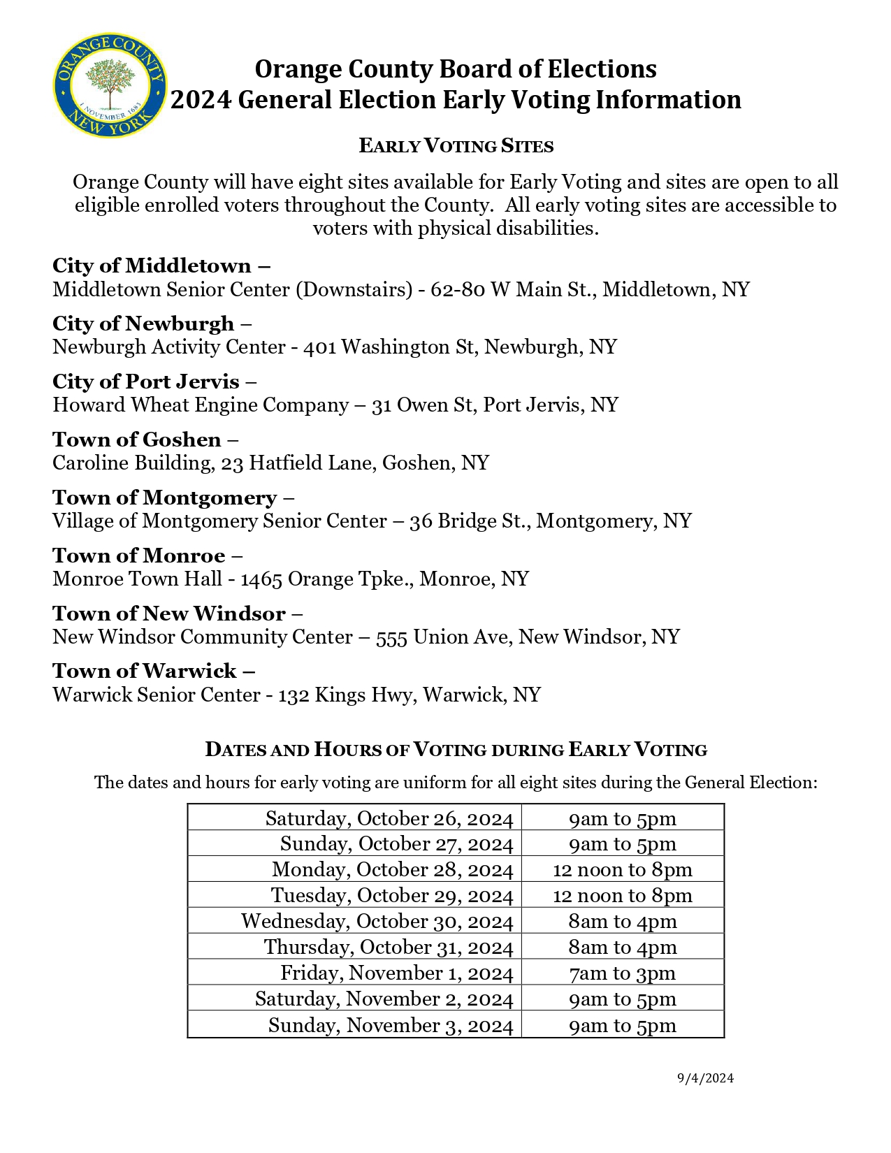 17 September General Election 2021 Early Voting Sites and Schedules September 17, 2021 By Danyelle Barrett General 0 General Election 2021 Early Voting Sites and Schedules Related Articles Early Voting Sites For Primary Election Early Voting Sites For Primary Election. 2024 General Election Early Voting Information 2024 General Election Early Voting Information. 2022 Early Voting Sites 2022 Early Voting Sites November 4, 2025 General Election Poll Sites November 4, 2025 General Election Poll Sites Voter Lookup Information and Town of Monroe General Election Poll Sites 11-5-2024 VOTER LOOKUP INFORMATION: https://vic.ntsdata.com/home/orange 2022 Early Voting Information 2022 Early Voting Information Comments are closed.
