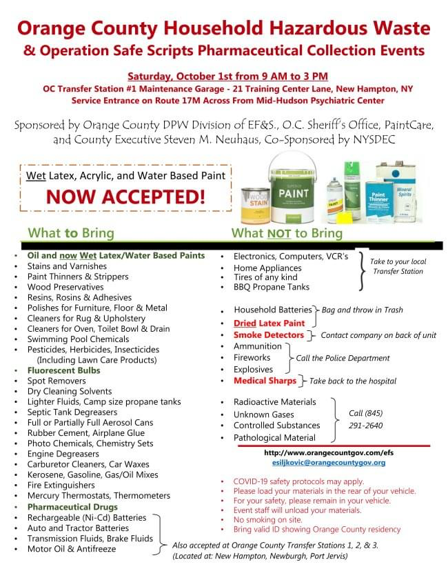 17 March Orange County Household Hazardous Waste Event March 17, 2023 By Town Clerk . Community News, General 0 Orange County Household Hazardous Waste Event. Related Articles 2025 Orange County Household Hazardous Waste & Operation Safe Scripts Pharmaceutical Collection Event 2025 Orange County Household Hazardous Waste & Operation Safe Scripts Pharmaceutical Collection Event 2025 Orange County Household Hazardous Waste & Operation Safe Scripts Pharmaceutical Collection Event 2025 Orange County Household Hazardous Waste & Operation Safe Scripts Pharmaceutical Collection Event. Orange County News: District Attorney David Hoovler Announces the Fourth Orange County District Attorney’s Office Youth Fishing Derby “Get Hooked on Fishing, Not Drugs” Orange County District Attorney David M. Hoovler on Wednesday, March 20, 2024, announced the launch of the fourth District Attorney’s Office Youth Fishing Derby. The Derby will run from April 1, 2024 through September 2, 2024 and is open to children between the ages of four and eighteen who are children or grandchildren of Orange County residents. The fishing is great in Orange County, so give it a try! In 2015, almost 45,000 fishing licenses were sold in Orange County. That year, of the 62 counties in New York State, only two counties sold more fishing licenses than Orange County. Last year, the New York State Department of Environmental Conservation stocked about 38,880 trout in Orange County waters. In addition, the Orange County Federation of Sportsmen stocked trout in waters with public fishing access. There are 86 named lakes in Orange County and hundreds more unnamed lakes and ponds that contain several species of fish of interest to the angler. Orange County also has many miles of rivers and streams to fish as well. The Hudson, Delaware, Neversink, Ramapo, and Wallkill Rivers and several small streams have public access to good fishing. If you do not own a boat, no problem. There is plenty of shore fishing in many state, county, and town parks in Orange County. Fish, large and small, call Orange County home. There are large striped bass in the Hudson River during the spring run. The New York State freshwater record striped bass, which weighed 60 pounds, was caught in the Hudson River in Orange County in 2014. Greenwood Lake has muskellunge, walleye, and bass ready to test your skills as an angler. The Wallkill River is loaded with smallmouth bass and rock bass. Try small topwater lures here for exciting action! If you are a novice or first-time angler, Orange County lakes, ponds, and streams are heavily populated with panfish that are easy to catch. Bluegills, pumpkinseeds, yellow perch, bullheads, and crappies are found in almost all the lakes and ponds in the county. Try worms under a bobber using light tackle and do not be surprised if a large bass or pickerel grabs your bait instead! Try Rutgers, Moodna, or Woodbury creeks for trout. Flies, small spinner baits, worms, or salmon eggs are used to catch rainbow and brown trout in those streams. Fishing teaches many life lessons, such as patience and how to deal with success and failure. Several U.S. presidents were accomplished fishermen and used fishing to relax from the stress and responsibilities of their office. Participants will also learn to enjoy and respect nature and, by spending more time with family and friends, will alleviate some of the boredom and anxiety caused by the stress in life. It is that boredom and anxiety that has led so many of our young people to turn to drug use or gang activity. Sports and other worthwhile activities can help deter young people from those bad choices. The Derby will encourage our young people to go fishing and enjoy the outdoors and hopefully avoid drug use. The Fishing Derby is part of District Attorney Hoovler’s community outreach program. This contest began during COVID-19 and continues to help young anglers make good choices. Participation in fishing skyrocketed with New Yorkers during the COVID-19 crisis, because that activity could be enjoyed at almost any age, in the outdoors with friends and family, while social distancing. The Fishing Derby will encourage the youth of Orange County to participate in an exciting outdoor sport that can be enjoyed for a lifetime. Remember, any fish entered in the Derby, big or small, has an equal chance to win a prize for the contestant. CONTEST RULES: Entry into the Youth Fishing Derby is free. All fish entered in the contest must be legally caught from anywhere in New York State. Contestants must adhere to all current New York State fishing regulations. Fresh and saltwater fish are eligible to be entered into the contest. To enter, email a photo of the contestant holding the fish, as well as the child’s first name and an adult contact phone number, to [email protected]. Each angler can enter up to three fish during the contest, to have multiple chances to win. Ten winners will be drawn at random from all entries received during the contest dates. Each angler is limited to one prize package. All photos entered in the Youth Fishing Derby becomes the property of the Derby. PRIZE PACKAGE: Each winner will receive an Orange County District Attorney’s Office limited t-shirt and a Mystery Tackle Box Bass Fishing Kit. Bonus prize: The first winner drawn will also receive a $100 gift card. Prizes can be picked up at the District Attorney’s Office by the winners in Goshen or will be mailed to them at the conclusion of the contest. “I wish good luck to all our young anglers,” said District Attorney Hoovler, “and I hope that you enjoy your time in our great outdoors. Please always remember safety! Wear a life vest when in a boat or near deep water. Be careful with hooks and other fishing tackle. Look where you cast and behind you, to avoid hooking someone by mistake. Remember sunglasses to protect your eyes from both the sun and from hooks that might pop loose from a hooked fish. Remember that 